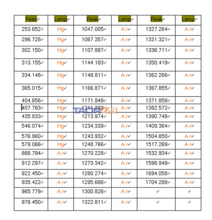 推奨波長:253.652nm / 404.656nm / 546.074nm / 576.96nm / 696.543nm / 826.452nm / 912.297nm